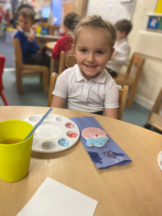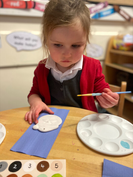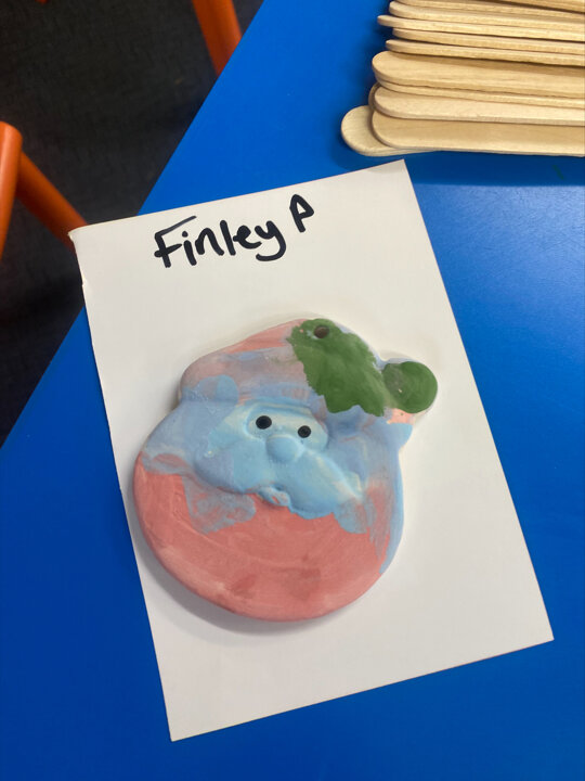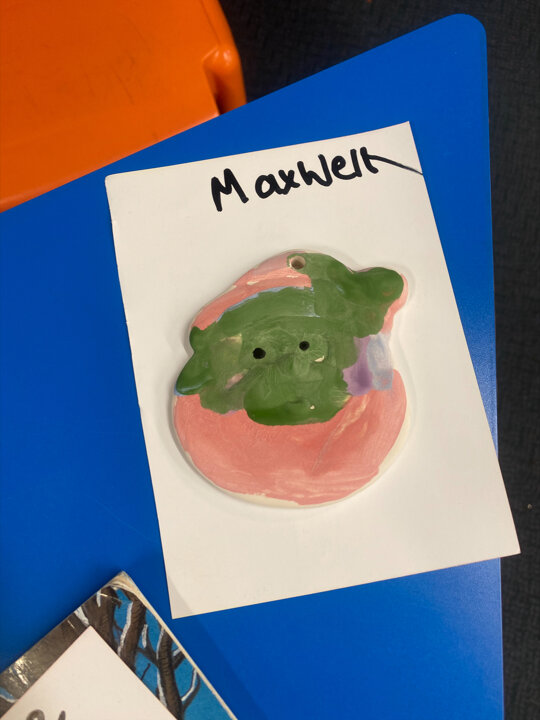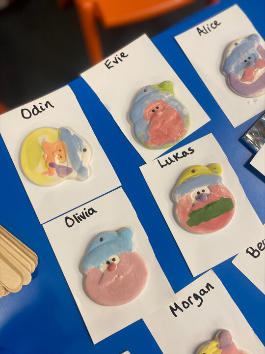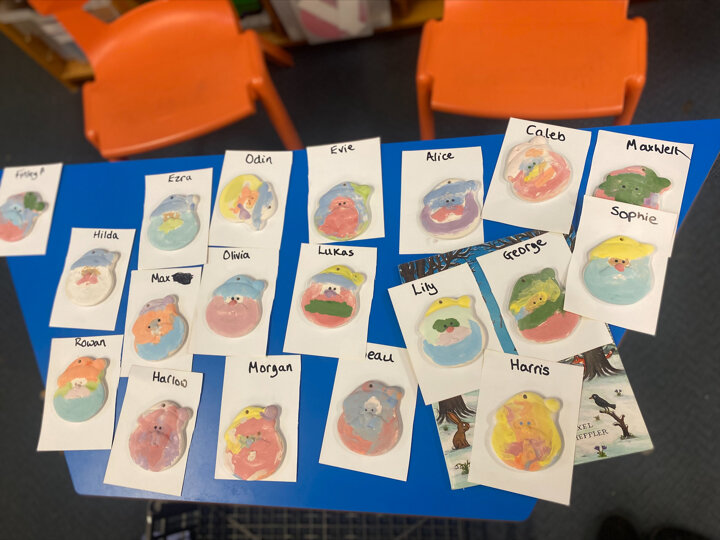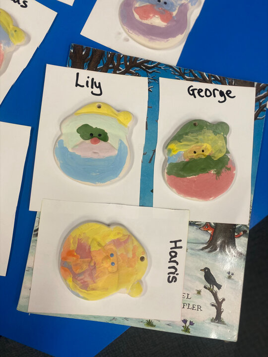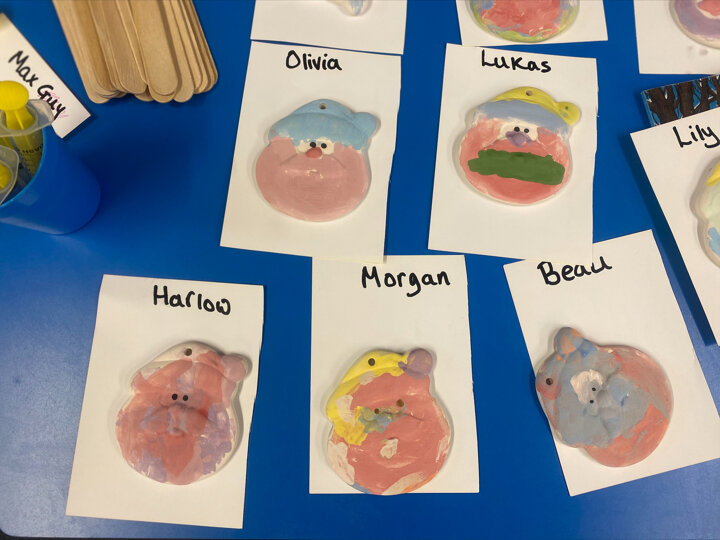 Paint Pot came to visit our class. She read the story Stickman and we carefully painted our own Santa decoration. We had lots of fun.