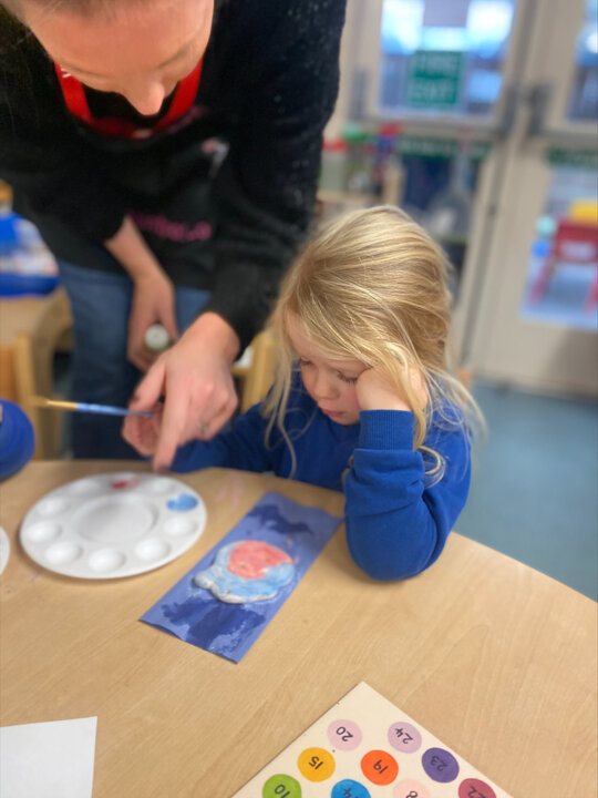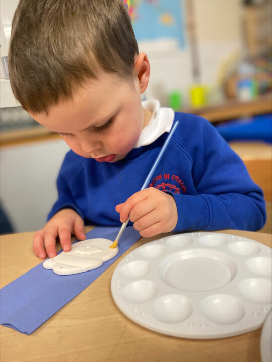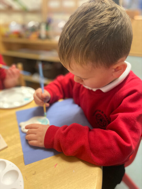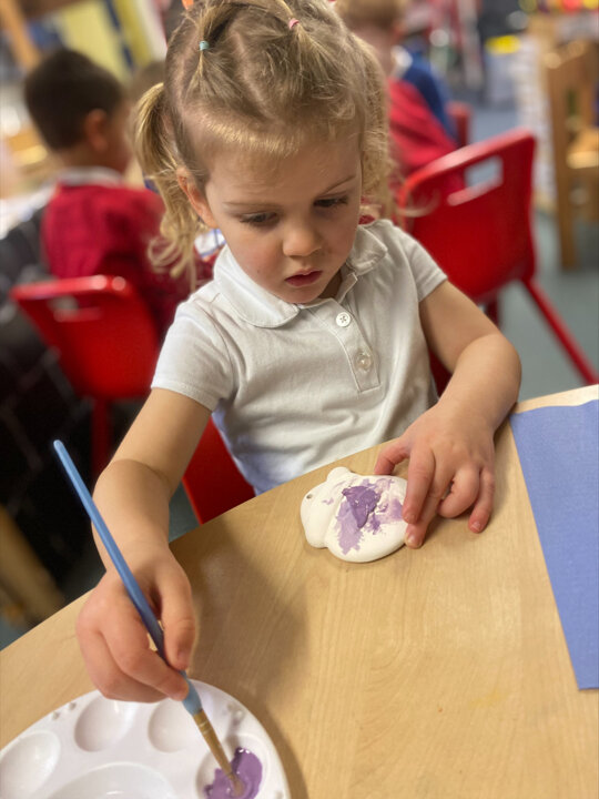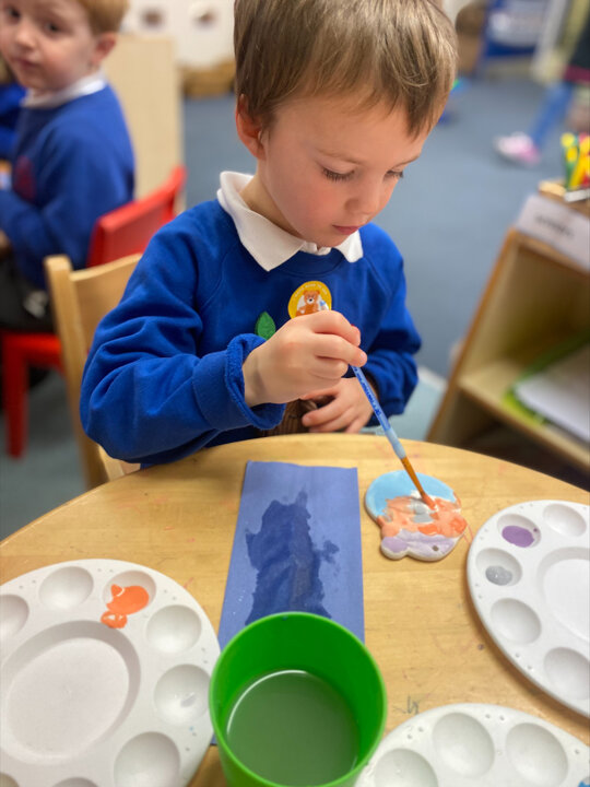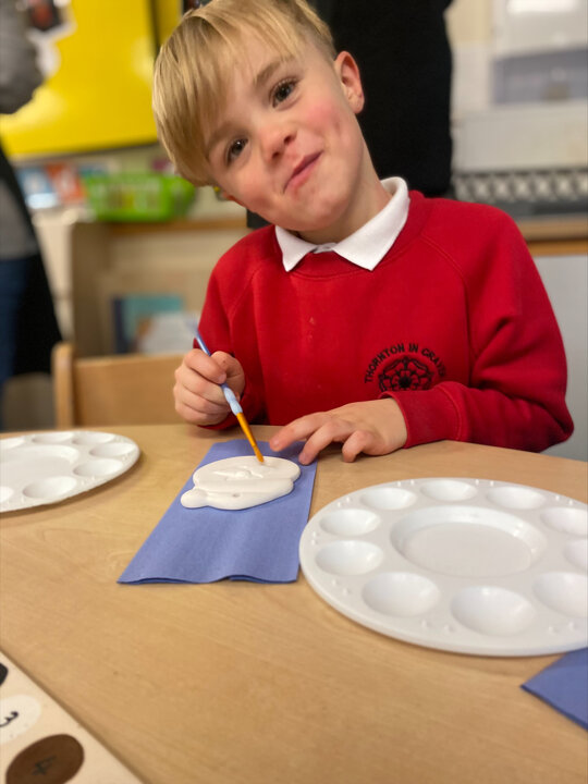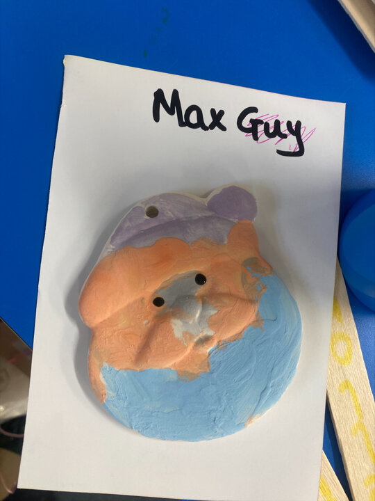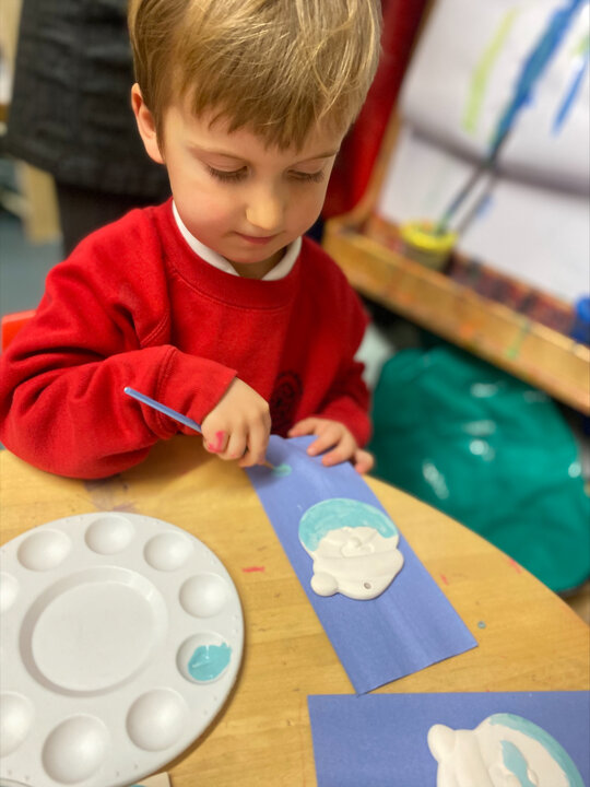 Paint Pot came to visit our class. She read the story Stickman and we carefully painted our own Santa decoration. We had lots of fun.
